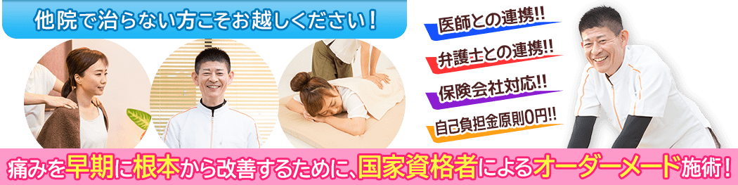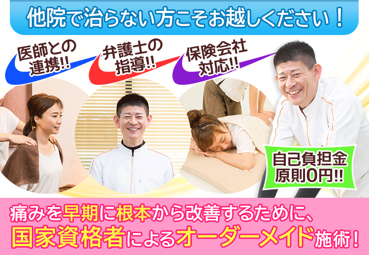 アキラ鍼灸接骨院は、むちうちに大変詳しい「弁護士法人心」さんの指導を受け、法律上適切な対応をいたします。